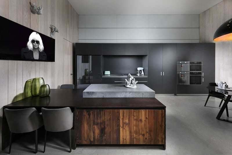 השיש והקרמיקה לא הוחלפו כלל. קולט האדים הישן הוסר ומערך התאורה עבר שדרוג מקיף, בהיותו של החלל הזה פעיל מאוד. בעל הבית משתמש במטבח לצרכיו המקצועיים, ולכן המטבח מותאם להם כמו כפפה ליד.