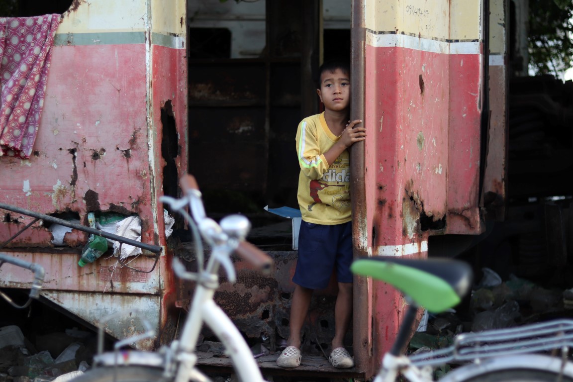 יצאנו לצלם על גדות נהר המקונג בתוך שכונה קטנה של פחונים. ממש בסמוך לה – שקועה על צידה, עמדה ספינה ישנה, שנראית כמו הטיטניק בגרסה הקמבודית. התחלתי לצלם, אבל הרגשתי שהפוקוס שלי לא במקום שבו הוא צריך להיות, ולא בגלל בעיה בעדשה: